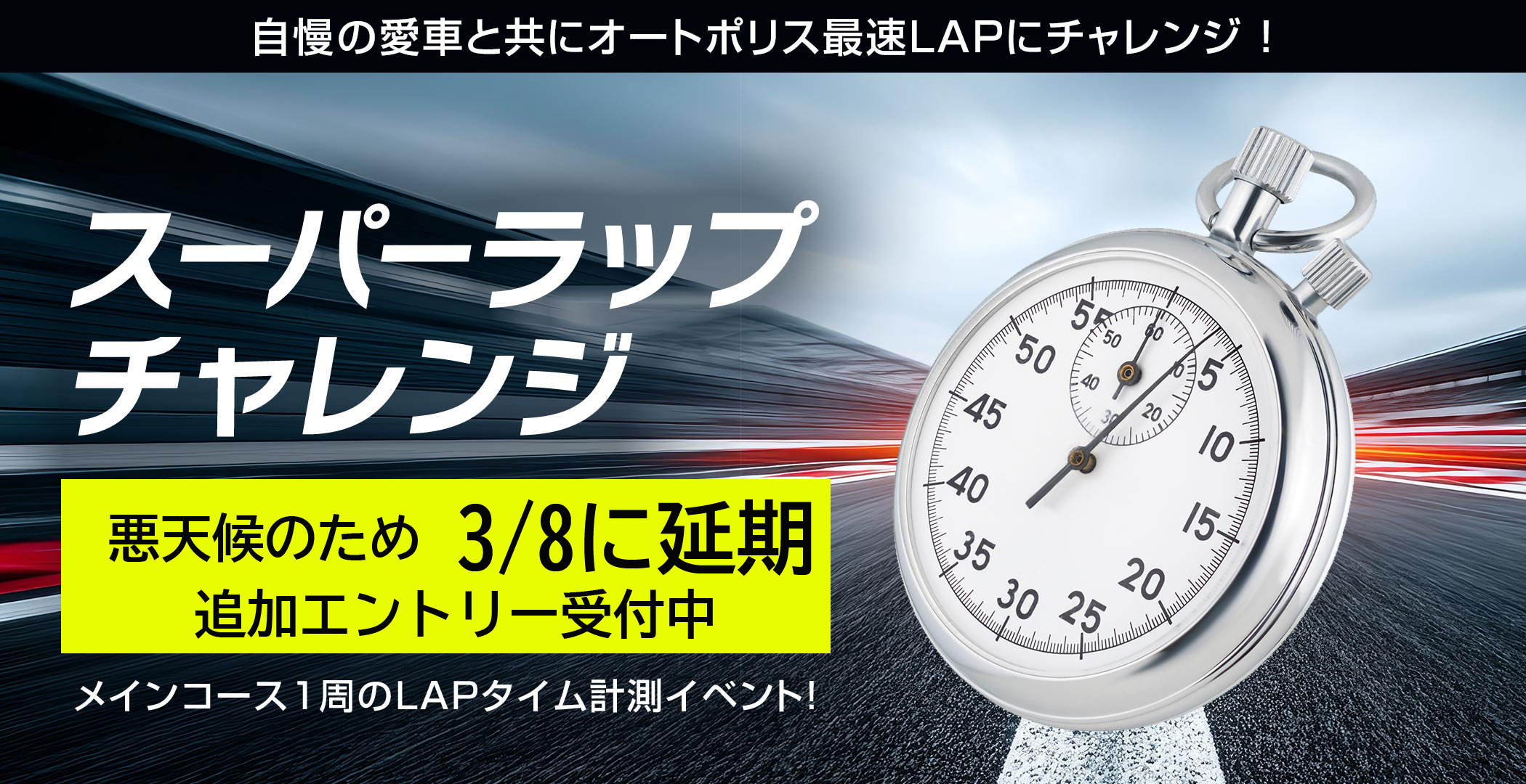 - スーパーラップチャレンジは3/8に延期開催いたします。追加エントリー受付中です。