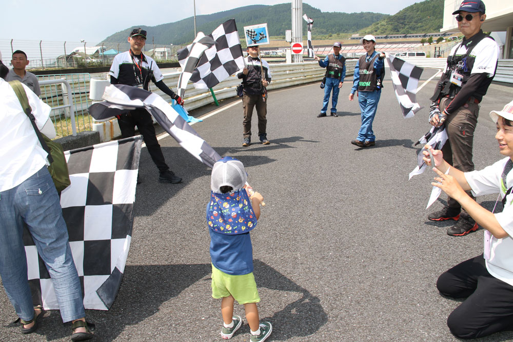 ピットウォーク開催時に、旗振り体験&写真撮影ができる!!