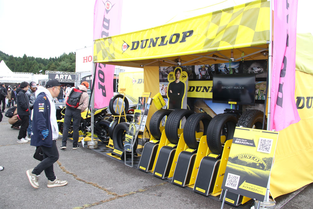 新商品のSYNCHRO WEATHERやその他タイヤ展示、DUNLOP仕様の車両・バイク展示をいたします。 また、DUNLOP応援フラッグも配布しております。お客様のご来場をお待ちしております。