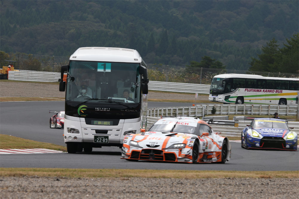 10月18日(土)SUPER GT公式練習後、観光バスに乗ってオートポリスインターナショナルサーキットを2周回します。な、なんと、乗ったバスの真横を猛獣のようなGTマシンが猛烈なスピードで追い越していくではないか!? 雄叫びを上げるGTマシンの圧倒的なド迫力を体感しよう!!